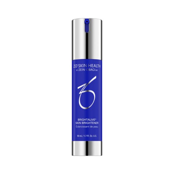 En produkt utan retinol som arbetar i flera steg för att dämpa framtoningen av mörka fläckar. Den bidrar till att minimera ojämnheter samtidigt som naturliga enzymer exfolierar huden. En intelligent peptid-drone jobbar selektivt med pigmentproducerande celler för att ge en jämnare hudton och minimera ny missfärgning. Detta förstärks ytterligare av tranexamsyra, som är en ny kraftfull ingrediens i kampen mot oönskad pigmentering. Tranexamic acid bidrar också till att bromsa UV-inducerad pigmentproduktion – som är en huvudorsak till hyperpigmentering. ZO Brightalive Skin Brightener är också förstärkt med Niacinamid som bland annat bidrar till att reducera pigmentproduktionen. Denna ingrediensen är en form av vitamin B3 som också ger huden en fin lyster. Samtidigt stöttar Niacinamid hudbarriären och verkar återfuktande. Niacinamid neutraliserar dessutom fria radikaler och återupprättar produktionen av hudens essentiella lipider, och säkrar därmed extra stöd till sensitiv eller irriterad hud.